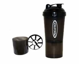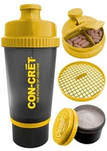 The pills can be kept in the top, powders in the bottom compartment and there is a neat little funnel included to save you from spillage. The price tag is also half of what the Smartshake asks for. Bonus funnel, and price, can not turn that down.