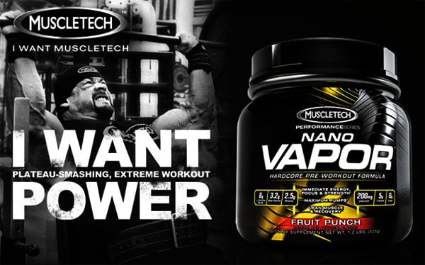 Here it is, the new Muscletech NaNO Vapor. The stylized muscle graphic makes it’s second appearance this time in the traditional Vapor black and yellow. The first thing to point out is that Muscletech have decided to skip the long annoying name and simply title this NaNO Vapor, no hardcore, pro series or elite. The pre-workout will be available in fruit punch and blue raspberry. The 40 serving tub should bring back some memories for true fans, if it is not the same it is a very close remake of the original Gakic Powder container. Some retailers have the supplement listed as pre-order, coming soon, back order or just out of stock. There is no exact date on when it will go on sale, based on the Hydroxycut Elite, give it a week or two.