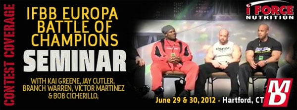 As per usual Muscular Development have some footage from the latest bodybuliding show, the IFBB Europa Battle of Champions. One of the exciting things that they captured from the event was the big celeb seminar. Featuring Kai, Branch, Victor and Jay Cutler. The video is almost half an hour long so sit down with a protein bar or shake and enjoy the unclear talk.