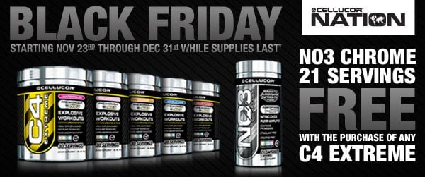 Cellucor announced some sales that they will have going on from the 23rd of November right up until the end of the year. When you purchase any C4 Extreme you will get a free 21 serving bottle of NO3 Chrome. The best in show brand is also giving away a free limited edition tee to the first 200 orders. The last offer Cellucor detailed, that doesn’t matter so much anymore, was just for Black Friday. One lucky person that purchased direct from the company on that day was going to get a free tub of the new Cor-Performance Whey.
