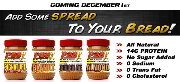The P28 Spreads that were announced earlier in the month have now got an official release date. From December 1st onwards you will be able to cover your high protein Bread, Bagels and Flats with four all natural flavors. Almond, chocolate, peanut and P28’s Signature variants contain no sodium, trans fat, sugar and come with 14g of protein per serving. Nutribread’s have already treated their fans with the release of their high protein Flatbreads, however nobody will be complaining with the holiday season just around the corner.