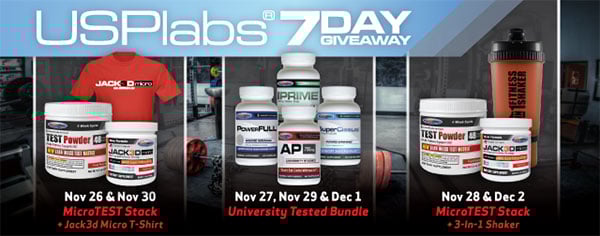 USP Labs have jumped on board with BB.com for a series of giveaways spread cross 7 days. The details of the competition are the same as usual, like the store and brand’s page on Facebook then submit your contact details. For what they are giving away they are not really asking for that much. The prizes can be seen in the picture above along with their allocated dates within the 7 days. For more details and the disappointment of the competition being only available to US residents, check out the entry page here.