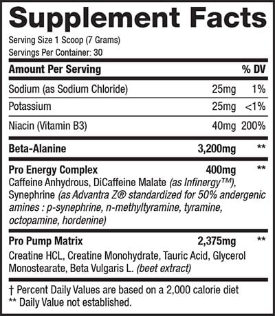 The last product in the Muscle Sport Pro Series is the pre-workout ExcelR8 which is made up of two proprietary blends and one transparent ingredient. The list of features behind ExcelR8 includes 3.2g of beta-alanine, a 400mg mix of caffeine, infinergy, and synephrine, and a 2.375g blend of creatine HCl, creatine monohydrate, tauric acid, glycerol, and beet extract.