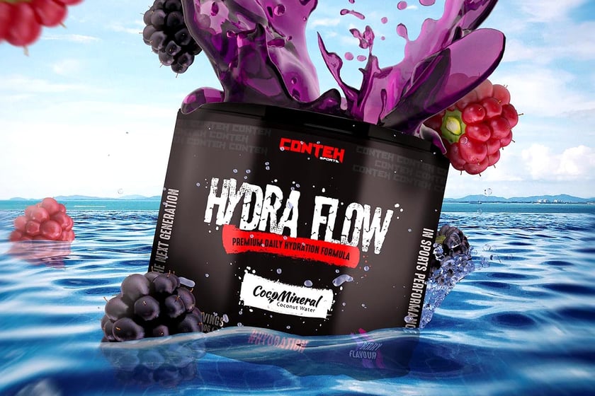Conteh Sports Hydra Flow is powered by seven key ingredients; all included to improve and enhance hydration and performance. The formula features three B vitamins, a hefty 300mg of the antioxidant vitamin C, manganese, and 300mg of elderberry. The last ingredient is the premium electrolyte source Cocomineral coconut water, and it is at a hefty dose of 3g per serving.