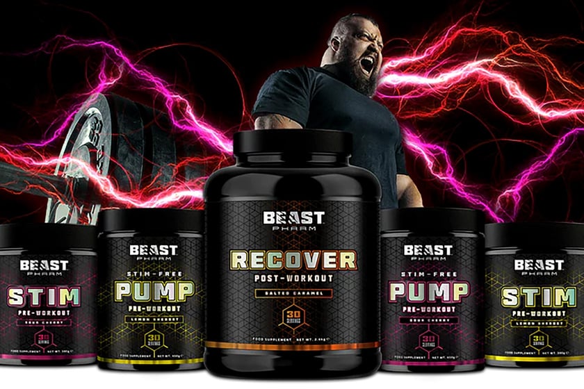 Right on queue as promised, Eddie Hall’s fresh new family of sports nutrition products under the name Beast Pharm, has gone live in the UK through the online store at beastpharm.com. The selection of supplements covers a couple of the industry’s most popular categories, with the stackable pre-workouts Stim and Pump, the hydration-supporting Hydro, and the protein-based post-workout solution Recover.