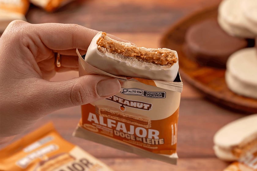 Dr. Peanut’s Alfajor is a better-for-you, mild protein version of the familiar Alfajor, traditionally made with flour, honey, and nuts, presented like a chocolate-covered cookie sandwich, where you get two crumbly cookies, a creamy filling, and a chocolate outer. There are two new tastes now available in Brazil for Dr. Peanut’s one-of-a-kind protein-packed snack, both named Dulce de Leche; the difference between them is that one is covered in white chocolate, and the other is milk chocolate.