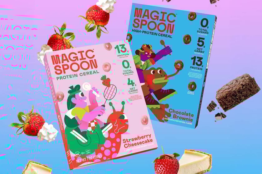 Magic Spoon has resurrected its past Chocolate Brownie flavor of Protein Cereal from around eight months ago in August of last year, and introduced a sweet Strawberry Cheesecake. The nutrition on these is as good as you’ve come to expect from the functional innovator, with 13g of protein in a 38g serving, 4 to 5g of net carbohydrates, 7 to 8g of fat, and as low as 140 calories. As is typical when Magic Spoon drops two new tastes, Chocolate Brownie and Strawberry Cheesecake are only available together in the Double The Dessert bundle, with two boxes of each at $39.